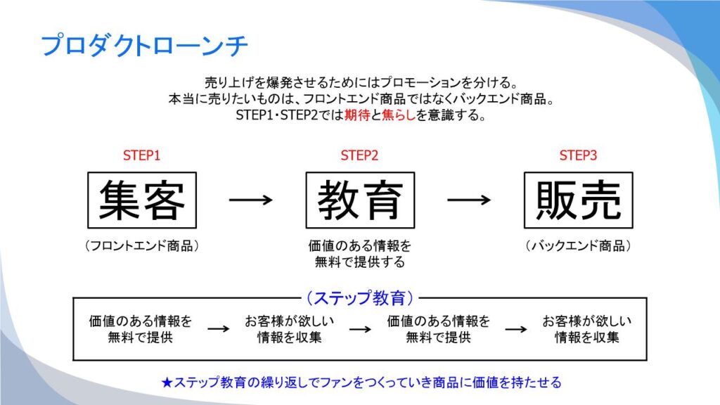 そして興味を持ったお客様に対して、高利益商品(バックエンド商品)を販売します。